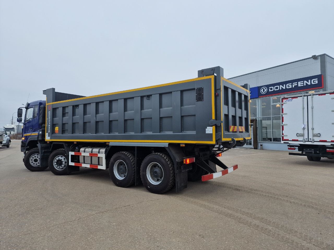 Dongfeng 8х4 — колёсная формула самосвалов, которая обеспечивает манёвренность и проходимость, позволяя использовать технику на сложных участках дороги и на городских магистралях.