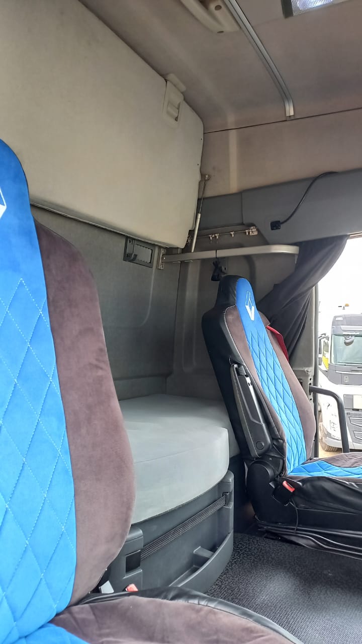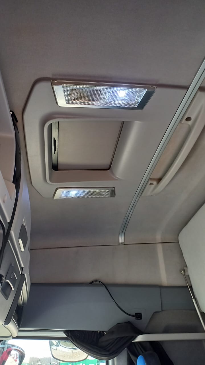 Кабина Sleeper Cab выполнена с акцентом на комфорт при длительных рейсах. Внутри предусмотрены два спальных места, пневматическое сиденье водителя с подогревом и поясничной поддержкой, кондиционер с электронным управлением, автономный отопитель 4 кВт, развитая система хранения и качественная шумо- и теплоизоляция. Панорамная приборная панель с 7-дюймовым цветным HD-дисплеем, управление функциями с руля и продуманная эргономика делают рабочее пространство максимально удобным.